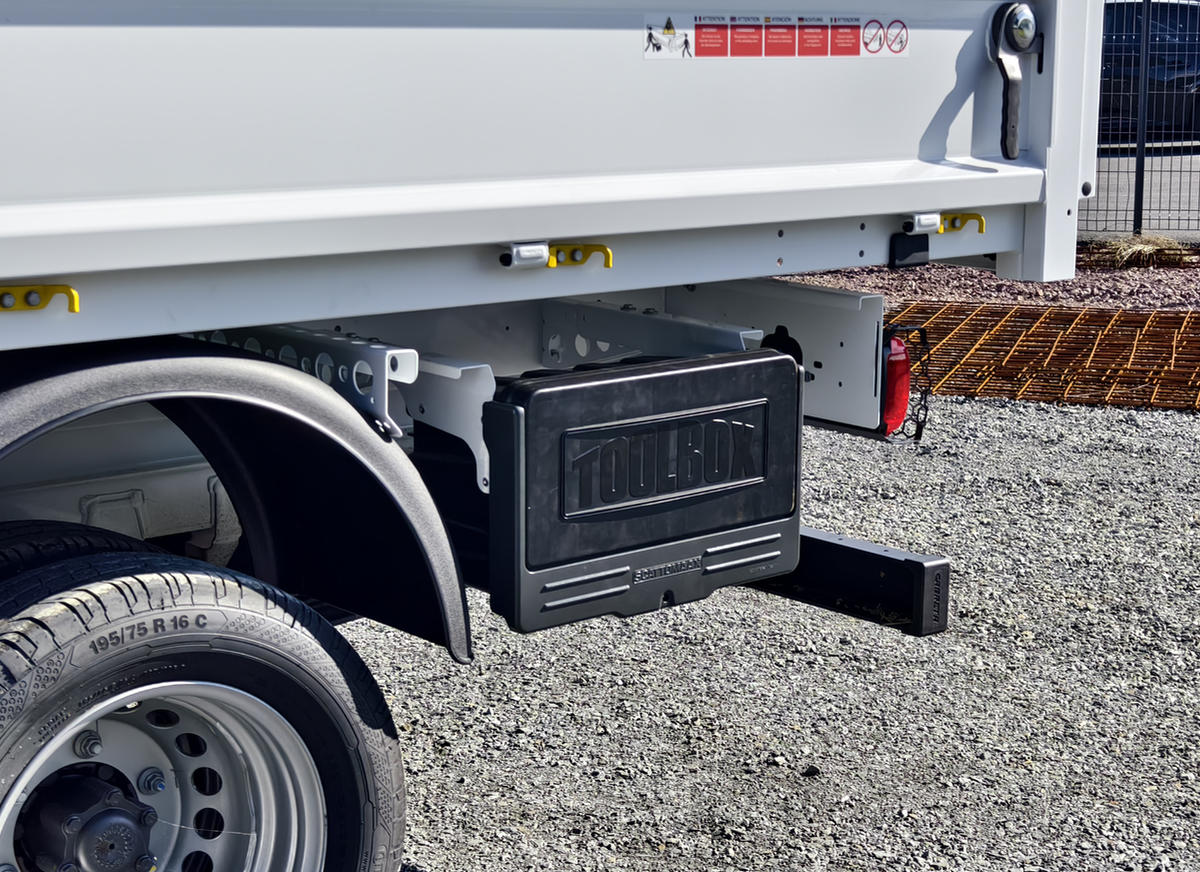 La benne est renforcée aux points critiques puis pourvue d'un traitement cataphorèse et d'un revêtement en poudre polyester.
