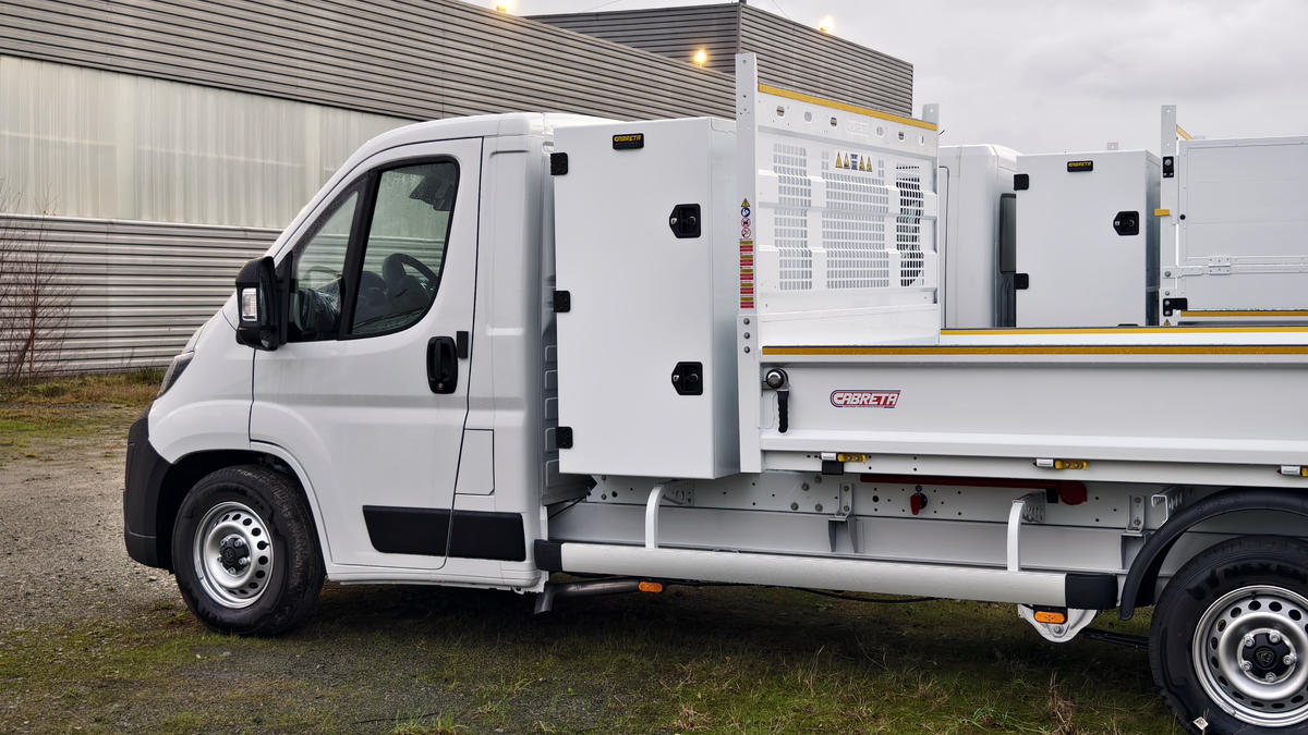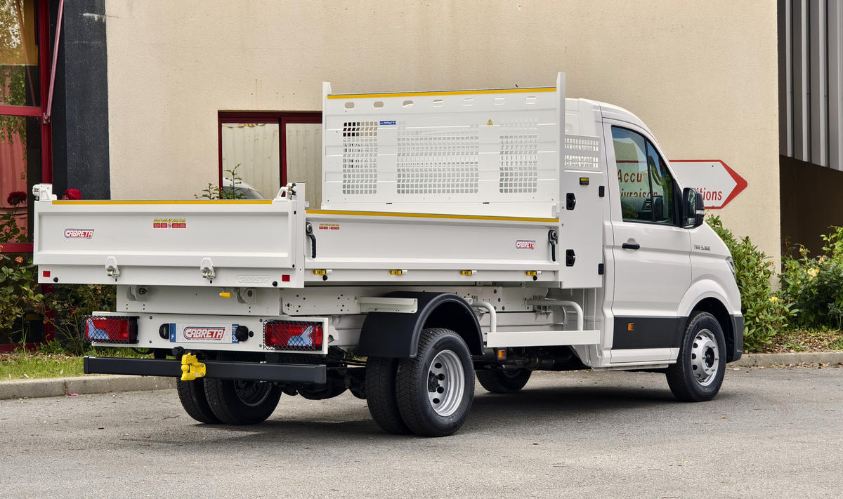 Elle est également équipée d'un coupe batterie de sécurité, situé sur le longeron gauche du faux châssis de la benne dans une position accessible et sûr.