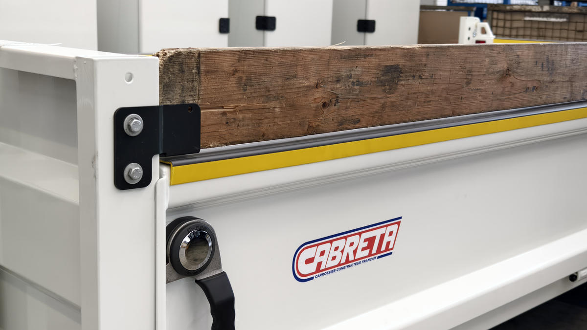 Les poignées de ridelles (brevet Cabreta) sont en inox. Lors de leurs mouvements elles viennent se verrouiller dans les inserts plastiques des poteaux avant et arrières afin de garantir une moindre usure.