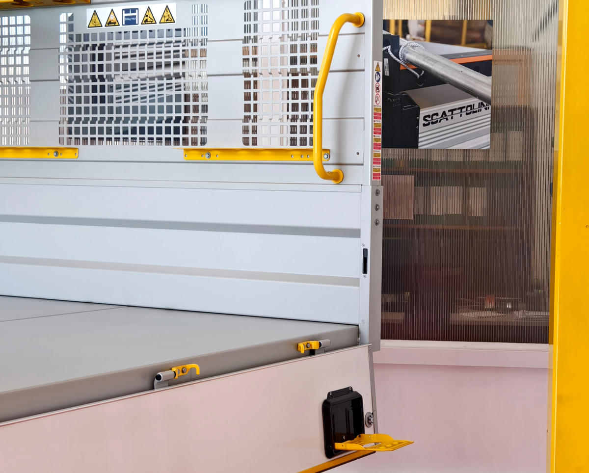 Le protège-cabine amovible est une exclusivité CABRETA en acier Z140 galvanisé à chaud ou aluminium d'épaisseur appropriée, avec une excellente résistance à la corrosion, pourvu de grandes ouvertures pour la visibilité du conducteur à l'arrière.